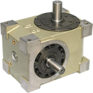 当分割器运动时,输入轴旋转,输入轴上的分度凸轮旋转驱动与凸轮辊啮合的凸轮辊,凸轮辊与输出转台和输出轴为一体,输出转台驱动输出。轴实现分离运动。这种状态也称为分裂运动状态。